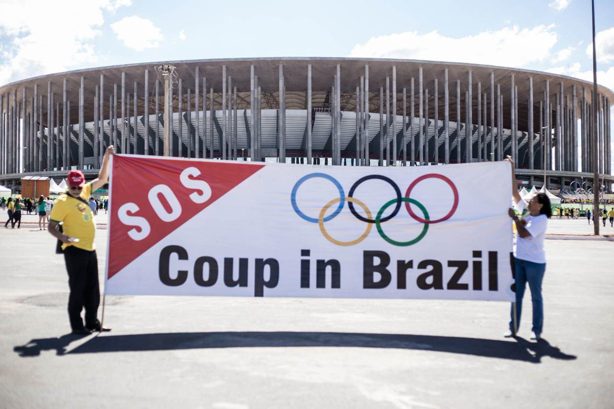 - RT j_livres: Rio de Janeiro - Manifestantes denunciam o Golpe no Bbrasil. #JogosDaExclusao #ForaTemer