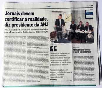 O recém-eleito presidente da Associação Nacional de Jornais, Marcelo Rech, no discurso de posse semanas atrás, declarou que jornais são certificadores da realidade. Discursos pedem frases bombásticas, de alto efeito retórico, passíveis de serem publicadas na primeira página dos jornais - como efetivamente ocorreu.